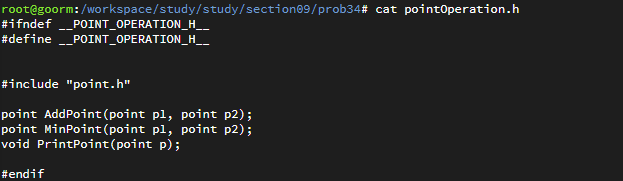 각 헤더파일에 ifndef 을 사용한것은 중복 정의를 피하기 위해 정의한 것이다. ifndef은 if not define 의 약자로 point.h의 경우 __POINT_H__가 정의되어있지 않으면 __POINT_H__를 정의하고 해당 구조체를 정의하는 것이다. 이후에 개발자의 실수로 point.h를 두번 선언하게 되더라도 중복을 피할 수 있도록 정의한 것이다.