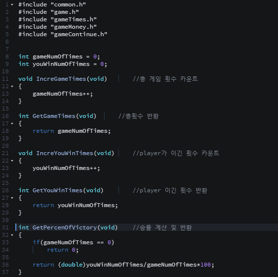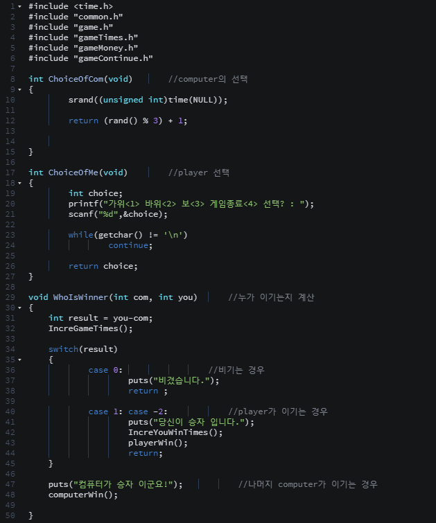 game.h에서 열거형 enum을 사용하여 각 가위 바위 보를 1 ,2 ,3에 대응 시켰다.