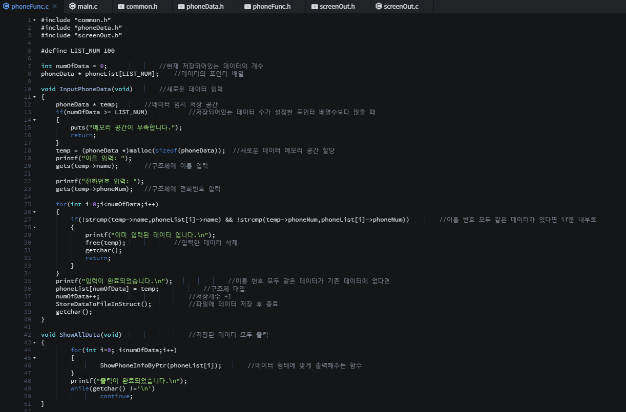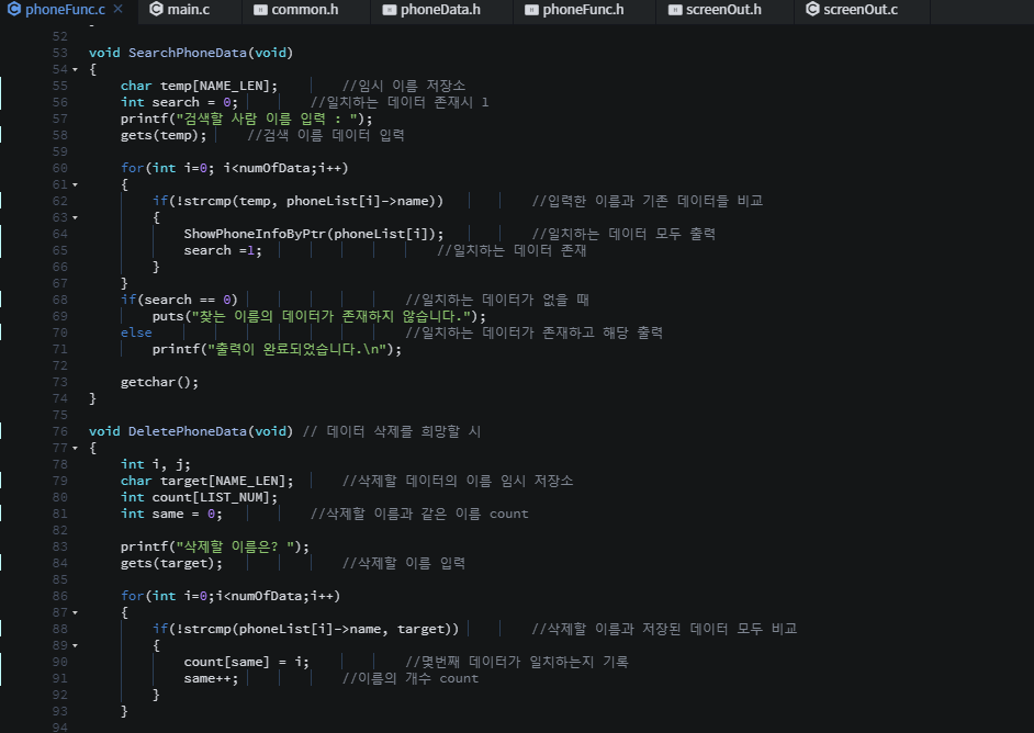 각 파일들에 같은 구조체로 각각 선언되어있다. 이러한 이유는 C파일을 object파일로 컴파일 할때 컴파일러는 각 파일단위로 각각 컴파일을 진행하기 때문이다. 한 파일에 선언된 구조체를 다른파일에서 사용할 수 없다. 각 파일들을 오브젝트 파일로 컴파일하고 이러한 오브젝트 파일들은 링커에 의해 연결된다.