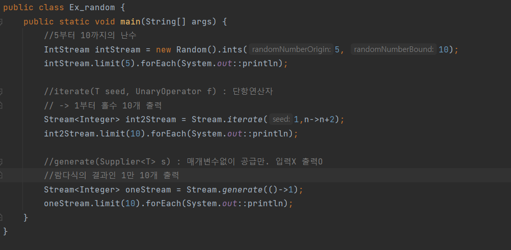 난수를 생성하는데 사용하는 Random클래스에 난수들로 이루어진 스트림을 반환하는 메서드가 있다.