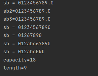 int capacity() : StringBuffer 인스턴스의 버퍼크기를 알려준다.
