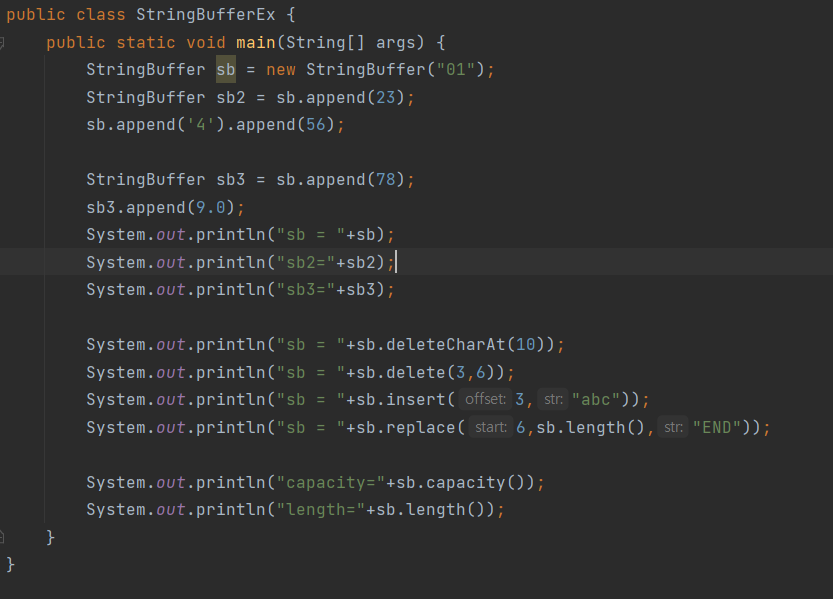StringBuffer replace(int start, int end, String str) : start~end의 문자열을 주어진 문자열(str)로 바꾼다. end는 포함되지 않는다.