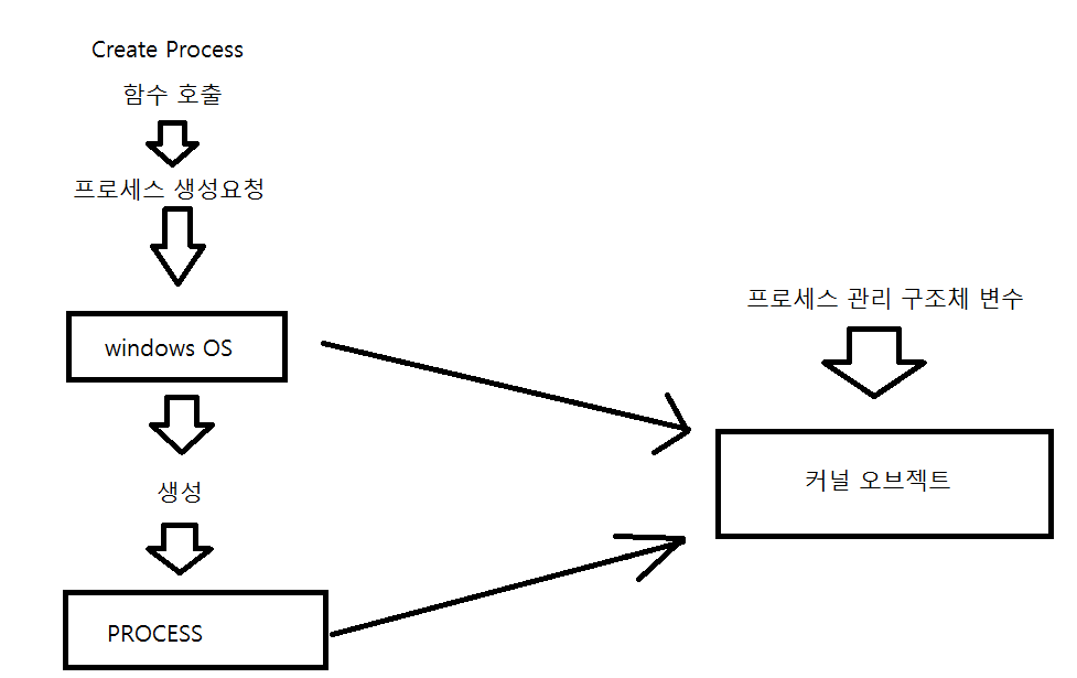 CreateProcess 함수를 호출하면 새로운 자식 프로세스가 생성되고, 자식프로세스를 위한 핸들 테이블도 더불어 생성된다. CreateProcess 함수 호출시 전달되는 인자에 따라 부모프로세스의 핸들테이블에 등록되어 있는 핸들 정보들을 자식 프로세스에 상속시킬 수 있다.
