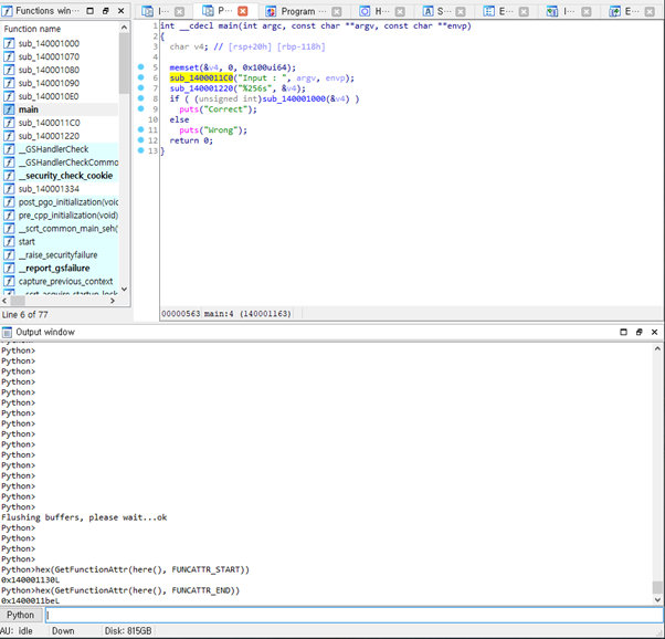Functions(start_addr, end_addr) : 함수 목록을 리스트 형태로 리턴(범위 지정 가능)